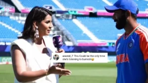 After India’s thrilling victory over Pakistan in the T20 World Cup in New York, Jasprit Bumrah, India’s star bowler, sat down for a post-match interview with his wife, presenter Sanjana Ganesan. Bumrah’s outstanding performance, which played a key role in India’s narrow win, earned him the “Player of the Match” award. During their light-hearted exchange, Bumrah shared his excitement about his performance in the high-stakes game. As the interview wrapped up, Bumrah humorously told Ganesan that he’d see her in 30 minutes, and she warmly thanked him for the chat.